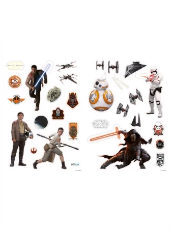 Wandsticker Star Wars Das Erwachen der Macht offizieller Star Wars Lizenz Artikel verwandelt ein Zimmer im Nu in ein Star Wars Themenzimmer alle Haupcharaktere aus Star Wars Awaken zusätzliche Kampfschiffe, Logos & Star Wars Symbole Maße: 2 Blatt je 70 x 50 cm